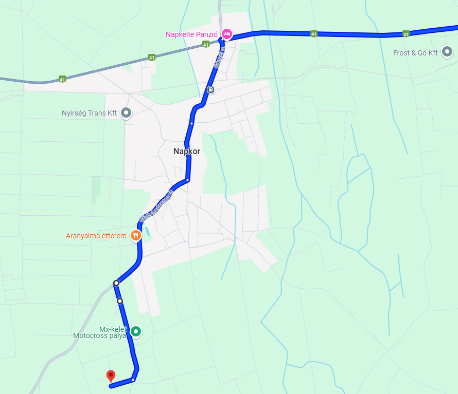 - Napkor település tábla előtt térj le jobbra (a pálinkafőzdével szemben) és kövesd az aszfaltozott utat!